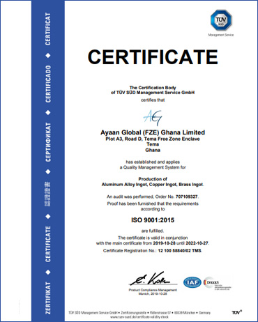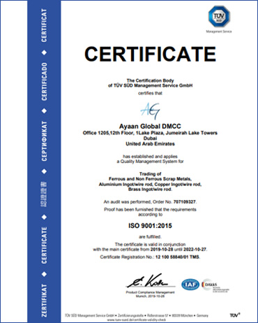 Established in Senegal in 2010, Ayaan Group is a prominent manufacturer of Secondary Aluminum Alloys, Copper Ingot, Brass Ingot and a global trader of Ferrous & Non-Ferrous scrap metal.